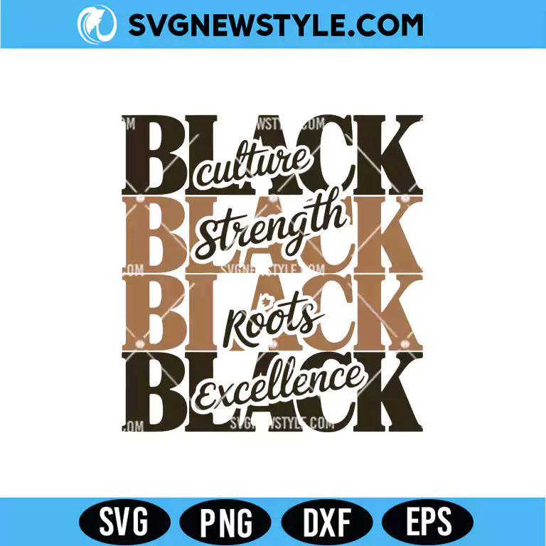 Black Culture Strength Roots Excellence SVG digital download including SVG, PNG, DXF, EPS files. Perfect for Cricut & Silhouette empowerment shirts and heritage crafts.