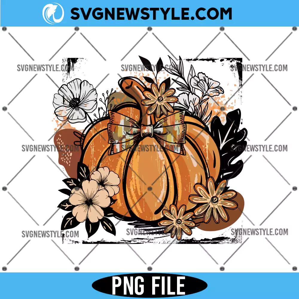 Boho Pumpkin Coquette Png sublimation, Floral Fall Pumpkin Png, Digital Download