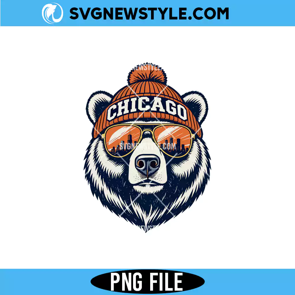 Chicago Bear Beanie Sunglasses PNG Digital Download – Funny Football Bear PNG