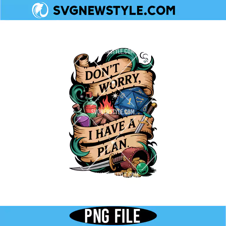The Don’t Worry I Have a Plan PNG design is perfect for t-shirts, hoodies, tote bags, mugs, stickers, planners, posters, and novelty gifts. It is a popular choice for friends, coworkers, and anyone who appreciates clever humor and relatable quotes.