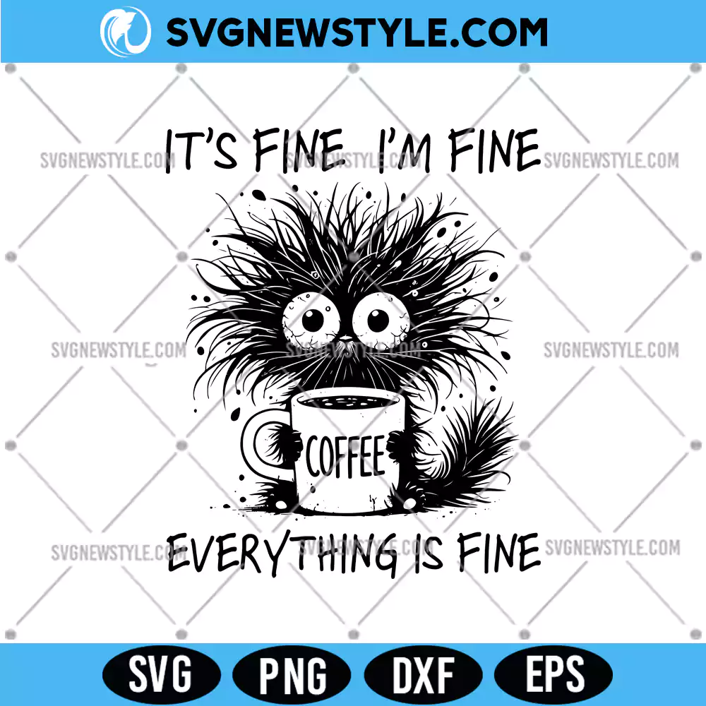 Funny Everything Is Fine Cat SVG Digital Download with PNG, DXF, EPS files for Cricut and Silhouette projects.