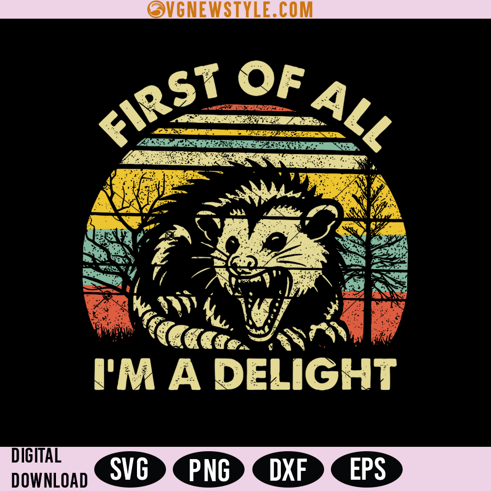 First Of All I’m A Delight Svg, Possum Lover Svg, Png, Digital Downloads