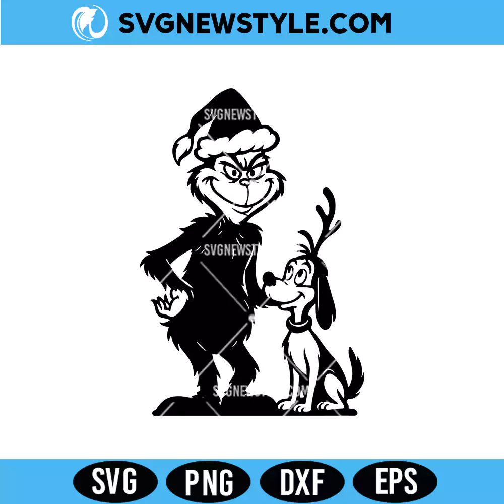 Download Grinch and Max Dog Christmas SVG, PNG, DXF, EPS files for Cricut & Silhouette. Perfect for festive holiday crafts and Grinch projects!