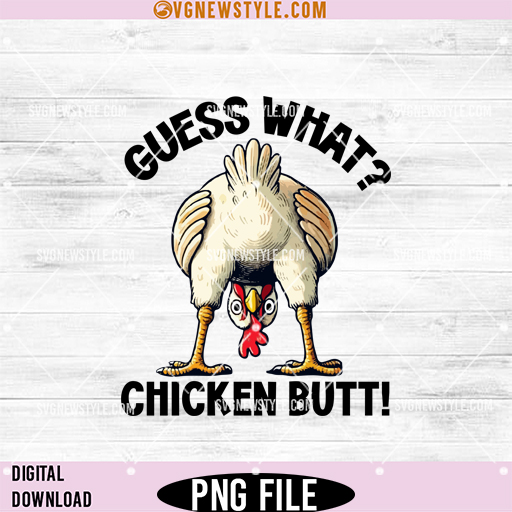 Download Guess What Chicken Butt PNG for funny T-shirts, mugs, and sublimation crafts! Perfect for Cricut, Silhouette, and digital projects.