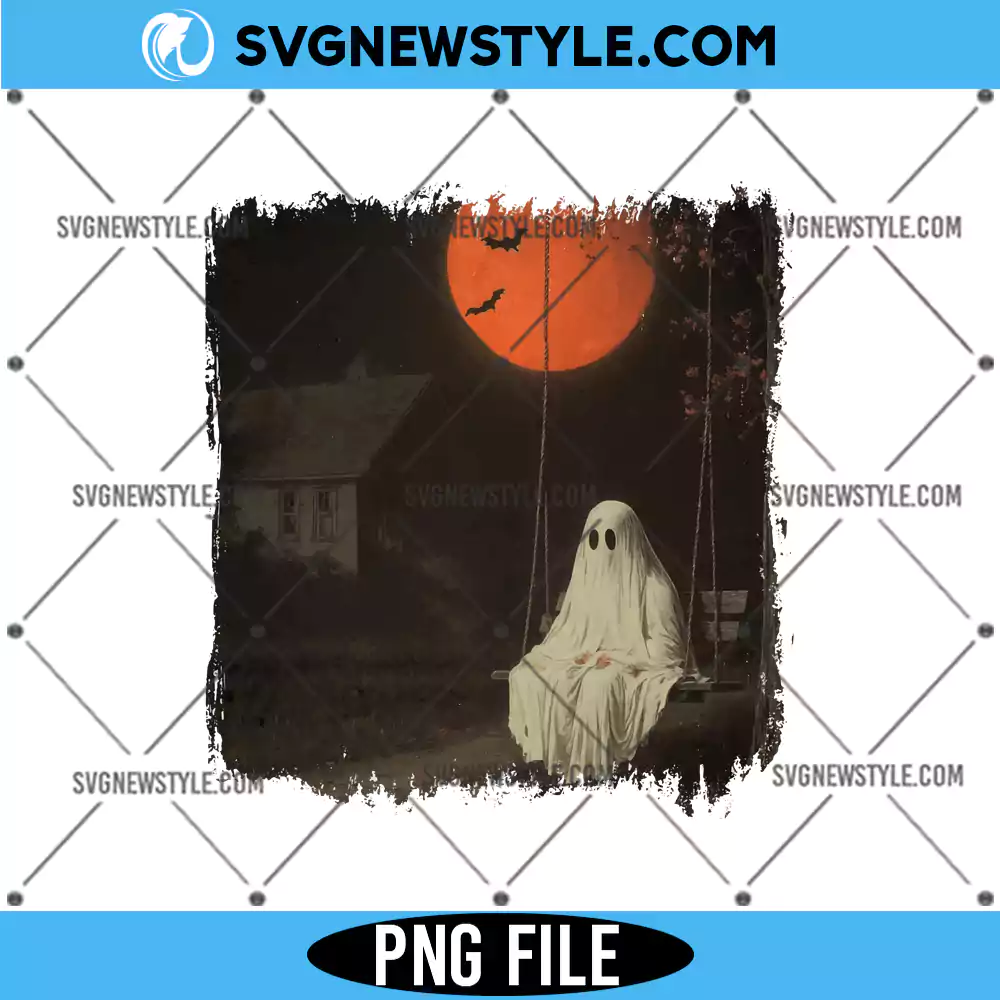 Haunted Ghost Swing Png, Red Moon Spooky Night Png, Digital Download