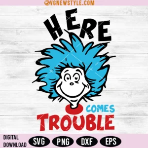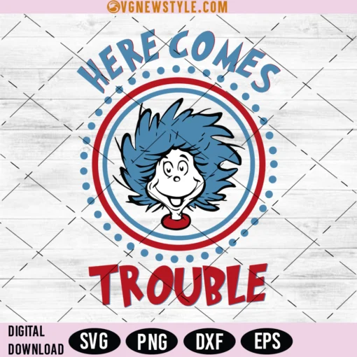 Here Comes Trouble Svg, Dr.Suesss Svg, Png, Dxf, Digital download