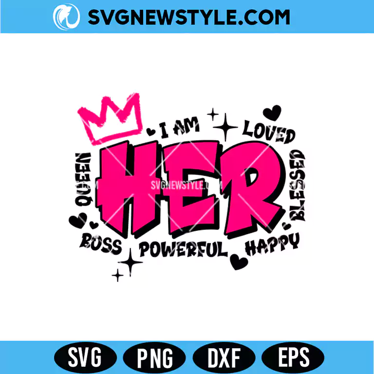 Featuring the powerful phrase “I Am Her,” this design represents self-worth, empowerment, and personal affirmation. It is perfect for projects that inspire confidence, remind women of their value, and encourage bold self-expression through meaningful typography.