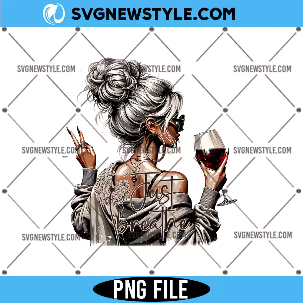 Download Just Breathe PNG for Cricut & Silhouette. Perfect inspirational sublimation design for shirts, mugs, and mindfulness crafts.