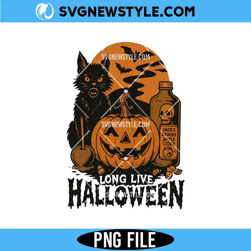 Long Live Halloween PNG, Black Cat Halloween Png, Digital Download