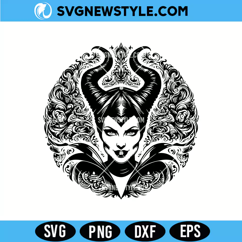 Download Maleficent Mandala SVG, PNG, DXF, EPS files. Ideal for Cricut and Silhouette Halloween crafts and Disney-themed DIY projects.