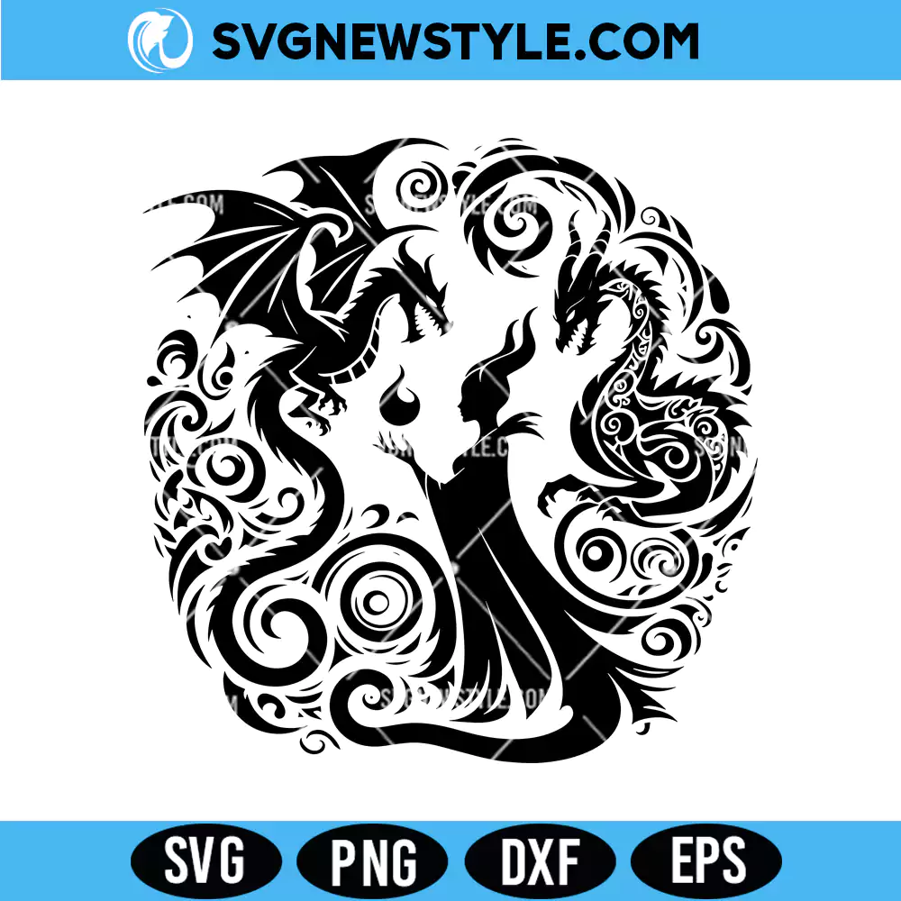 Download Maleficent Villains Mandala SVG, PNG, DXF, EPS. Perfect for Cricut, Silhouette, and spooky Disney-themed crafts.