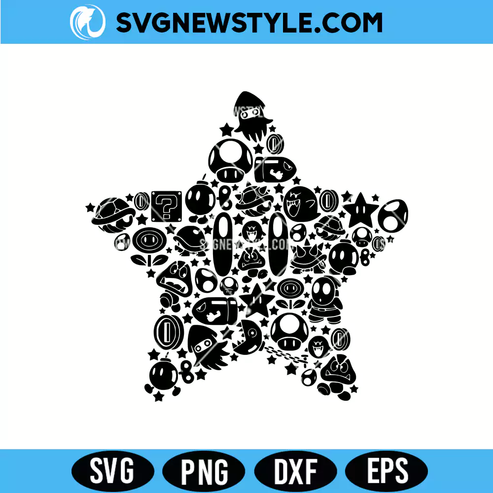 Mario Star Mosaic Svg, Super Mario SVG, Png, Dxf Cricut & Silhouette