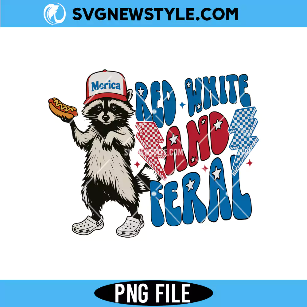 Red White And Feral Png, Hotdog Raccoon Png, Digital Download