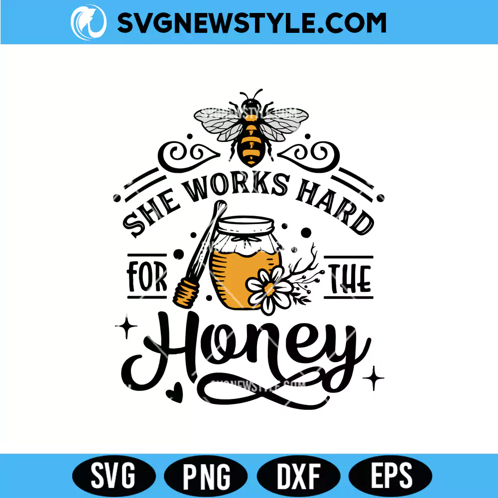 She Works Hard For The Honey Svg, Natural Svg, Png, Cricut & Silhouette