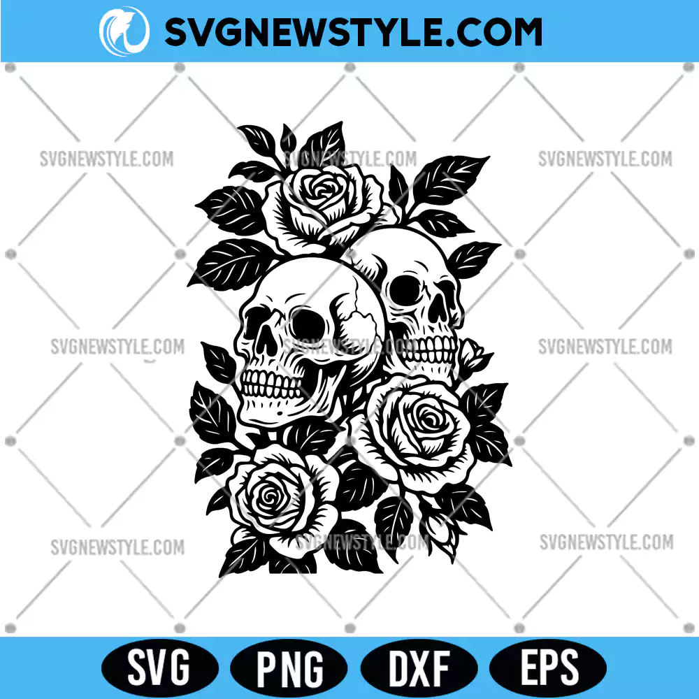 Skulls and Roses SVG digital download with PNG, DXF, EPS. Ideal for Cricut & Silhouette gothic floral craft designs.