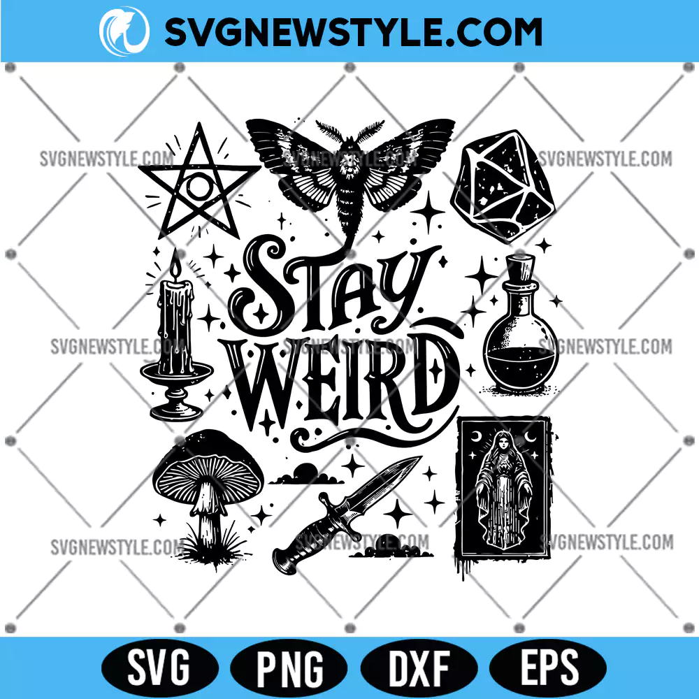 Download Stay Weird Witchy SVG, PNG, DXF, EPS. Ideal for Cricut & Silhouette Halloween shirts, mugs & witchy crafts.