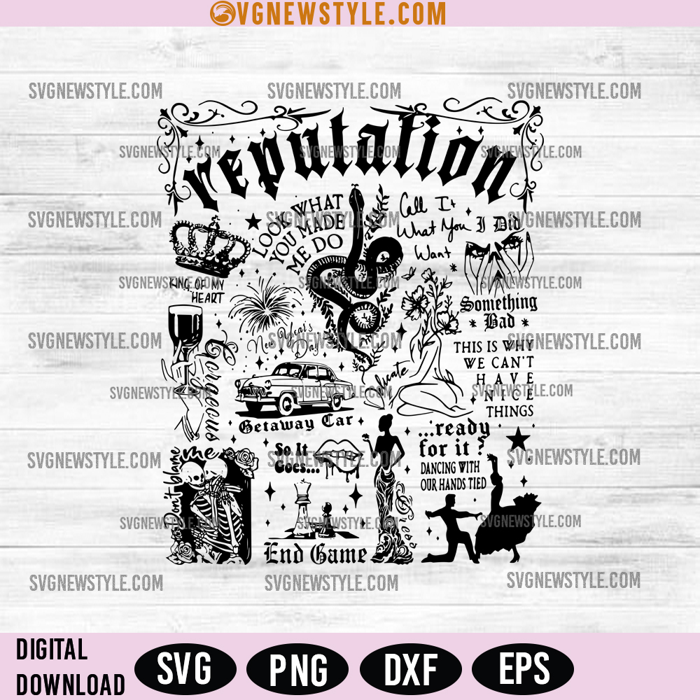 Swiftie Tracklist Reputation SVG: Celebrate your love for Taylor Swift with this unique design. Perfect for t-shirts, phone cases, and more.