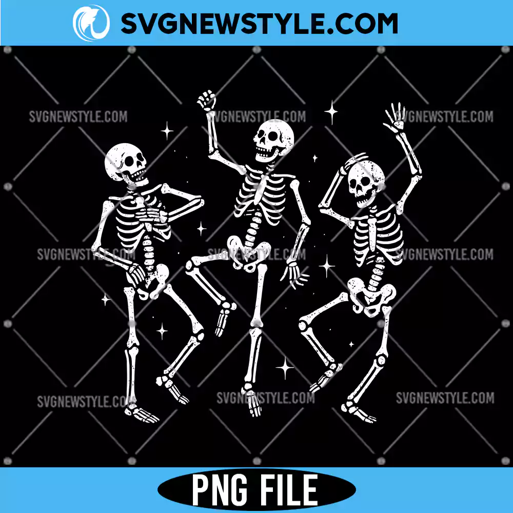 Download Vintage Dancing Skeletons PNG for Sublimation. Perfect retro Halloween design for Cricut & Silhouette crafts.