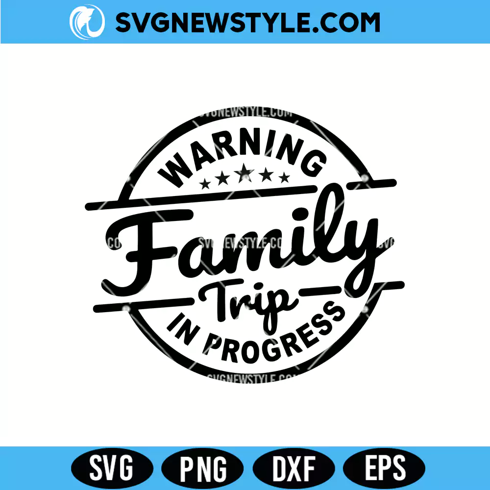 Download Warning Family Trip In Progress SVG PNG DXF EPS – funny Cricut file for vacation shirts, signs, and road trip crafts