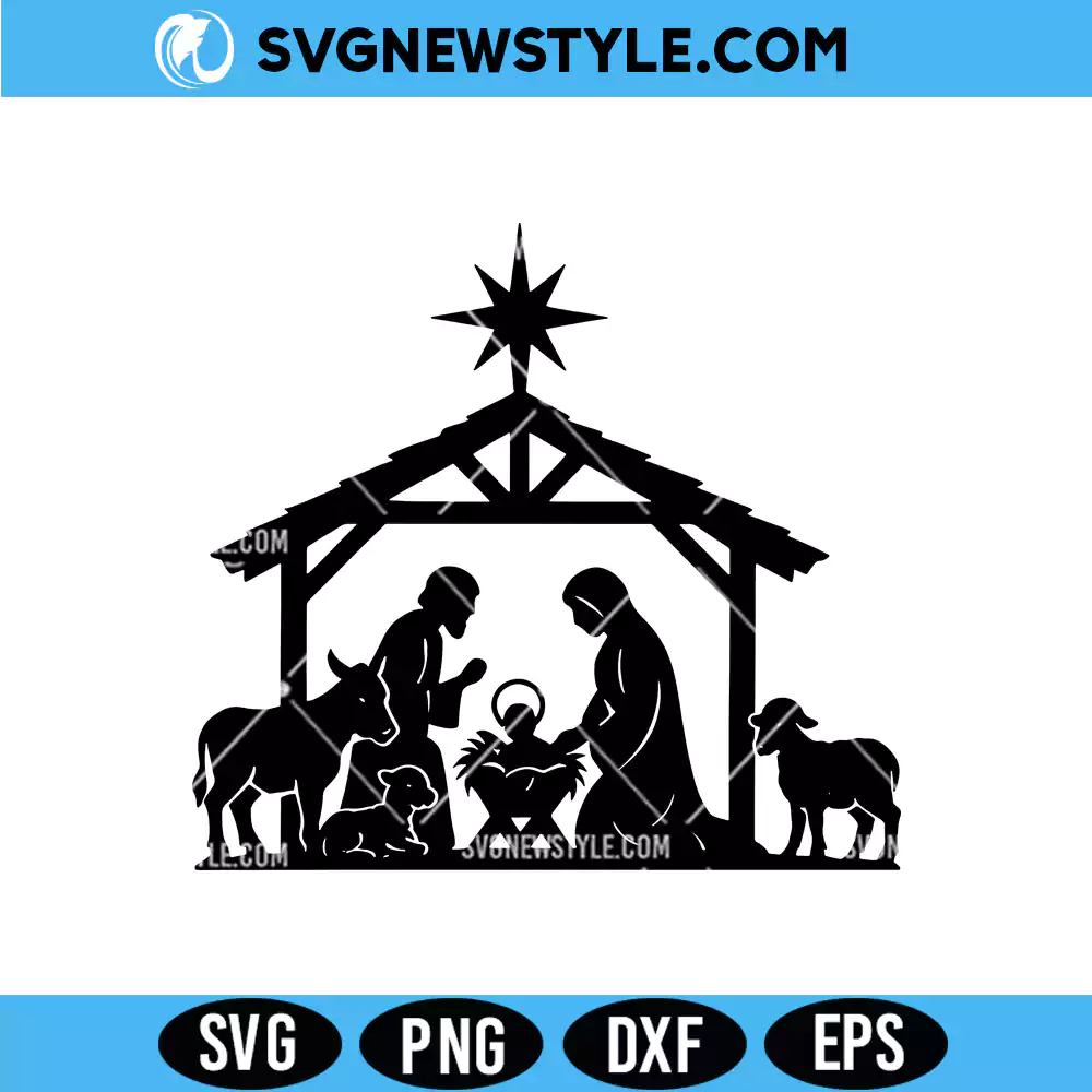 Download X-mas Nativity Scene Christmas SVG, PNG, DXF, EPS files for Cricut & Silhouette. Perfect for religious holiday crafts!